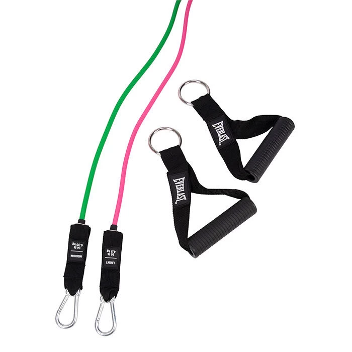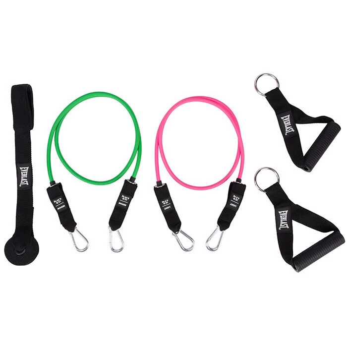 Define your upper body muscles with Everlast’s Power Cable Resistance Kit. The power cable is made of premium latex helps improve your range of motion. With 10 and 14 pounds of resistance between two tubes, you’ll get all the muscle-tightening you want from weights, without the bulkiness and heaviness. Use the multi clip system to quickly add or substract tension for a customizable workout. Attach the power cable to the door anchor so you can incorporate pulling and rowing into your workout, boasting overall versatility. These accessories conveniently fit in the lightweight carry bag for easy transporting. When you’re always on the move or when time is of the essence, trust in this fitness kit to give you intense workouts, flexibility training or muscle repair.